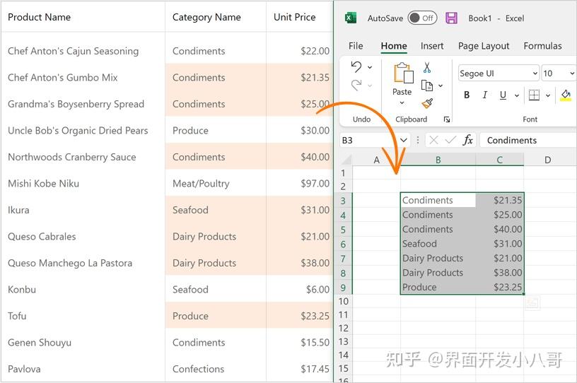 启用多个单元格选择后,用户现在可以复制单元格范围并将其粘贴到网格单元格或外部控件(例如 GridView、Spreadsheet、TreeList)中,用户还可以复制单元格范围并将其粘贴到 Excel 中。