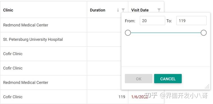 在数值的列过滤器中合并了一个范围跟踪栏,要激活此选项,请将SettingsHeaderFilter.Mode属性设置为“NumericRangePicker”。