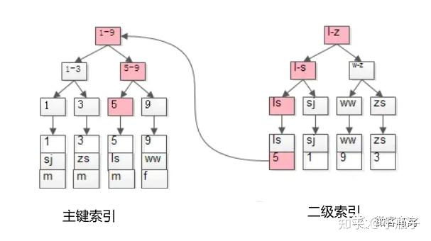 除了主键索引外,其他的索引都称之为二级索引,或非聚集索引,同样也是一颗 B+ 树索引,它和主键索引不同的是「叶子节点存放的是索引键值、主键值」。