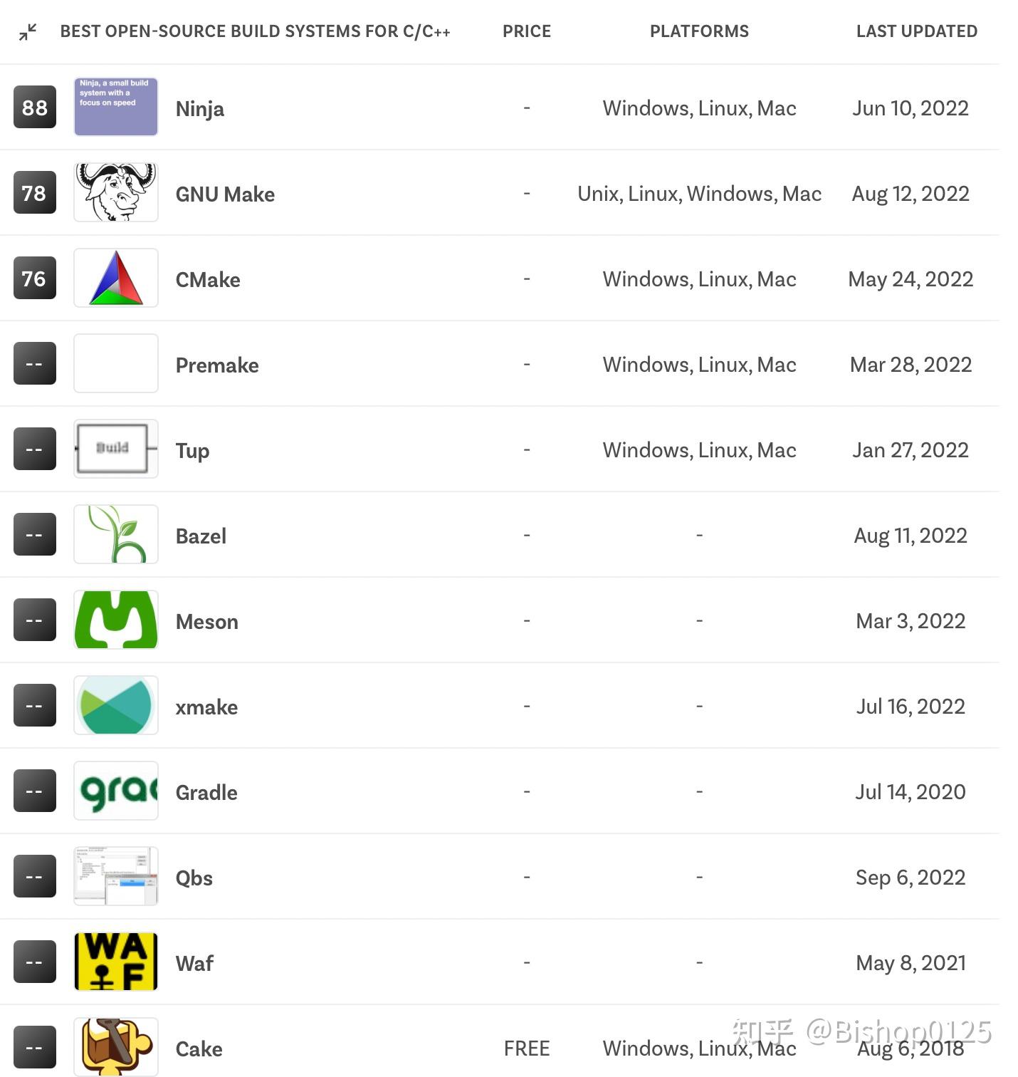 - 其他的诸如Meson,Premake,FMake,Fastbuild,Waf等等太多了。