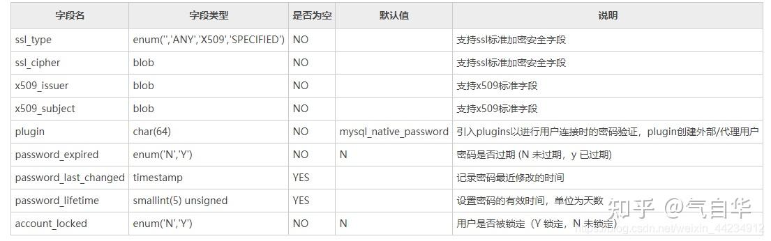 创建新用户时,也是设置这 3 个字段的值。修改用户密码时,实际就是修改 user 表的 authentication_string 字段的值。