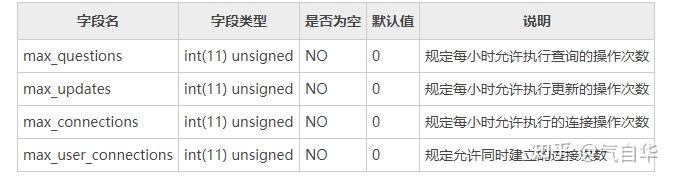 限制用户使用的资源,字段的默认值为 0,表示没有限制。