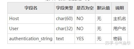用户列存储了用户连接 MySQL 数据库时需要输入的信息,5.7 版本不再使用 Password 来作为密码的字段,而改成了 authentication_string。