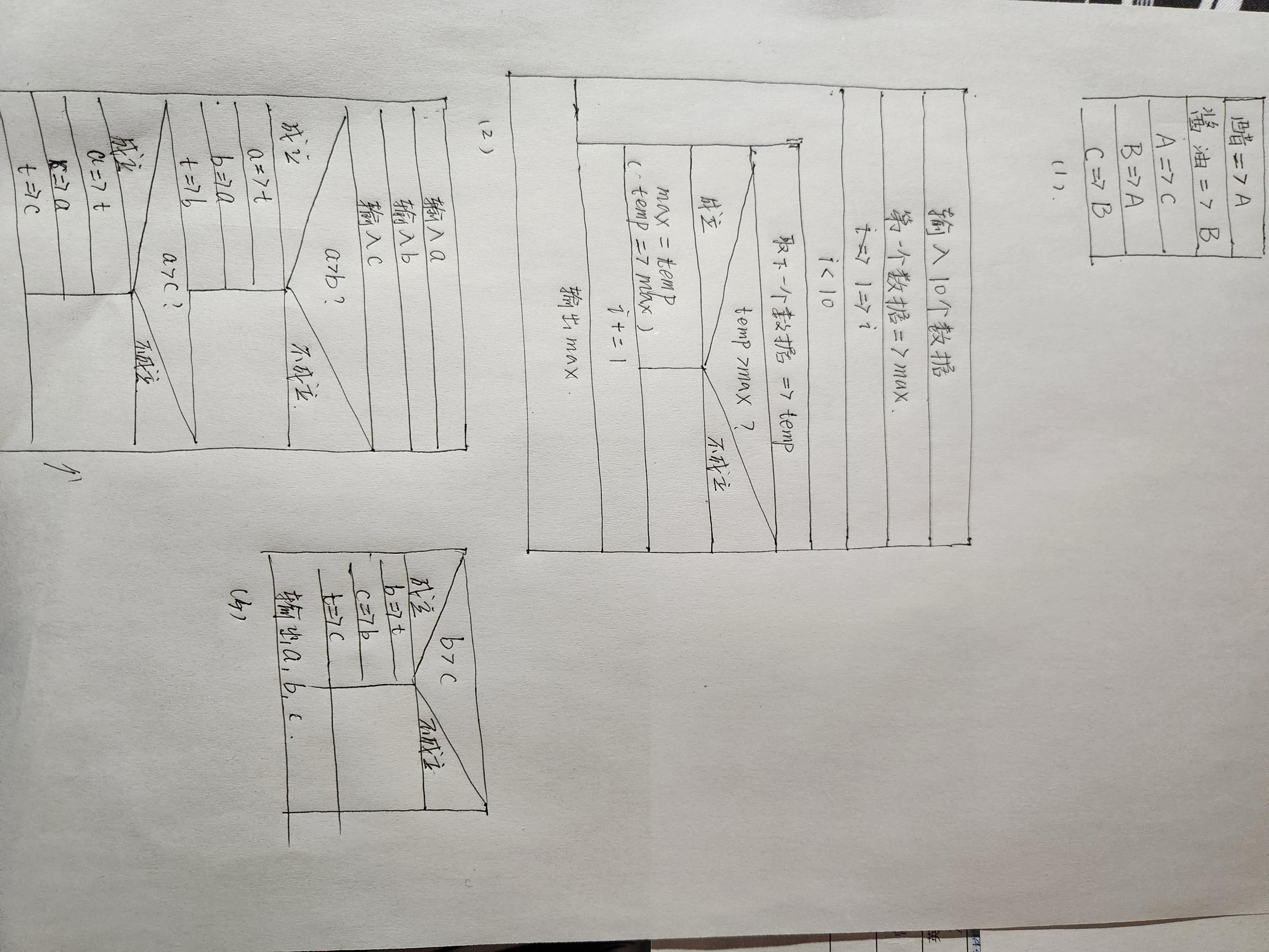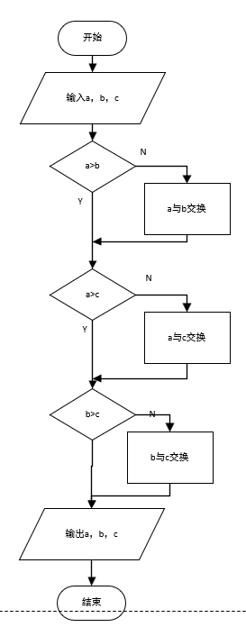 (3)有3个数a,b,c,要求按照大小顺序把它们输出。