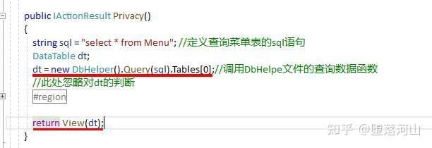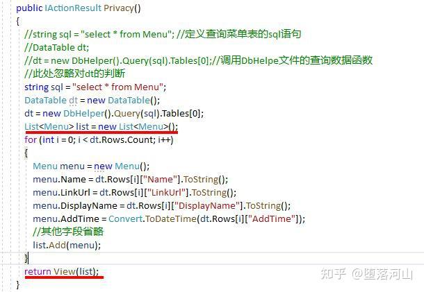 (4).还要一种写法,在Action中,将DataTable转成Model,这样可以遵循一下MVC模式,例如,还是Privacy这个Action,我们如下修改: