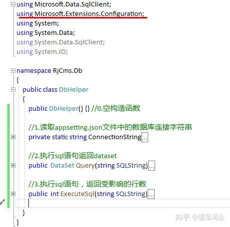 在讲EF的配置之前,我想说下基于http://ADO.NET的数据库操作方式:原来做项目时,都是要有个DBHelper文件,来进行数据库的增删改查操作,那么在http://Asp.net core中如何使用(不推荐,但是也可用)呢?