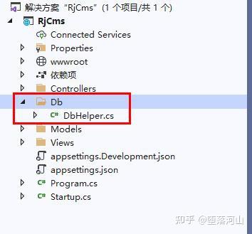 1.我们在根目录下,建立个Db的文件夹,然后建立个DbHelper.cs的类文件;