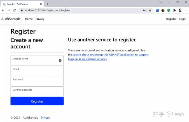user.Name = Input.Name;启动申请后,您将看到以下注册表格: