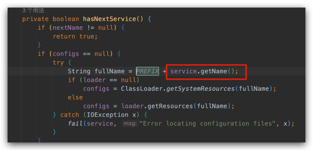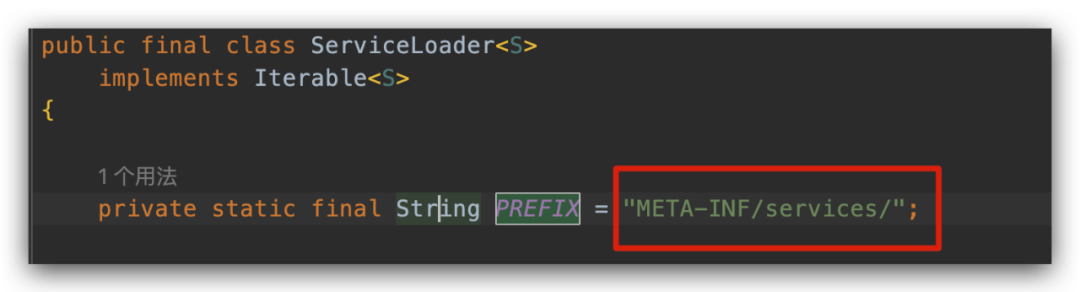 点开 ServiceLoader 我们可以看到有一个常量 PREFIX,如下所示,这也是为什么我们必须在这个路径下面创建配置文件,因为 JDK 代码里面会从这个路径里面去读取我们的文件。