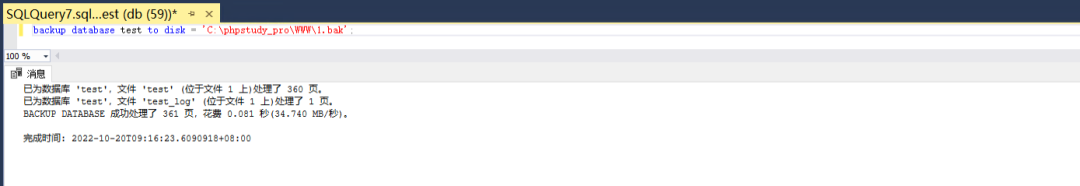 backup database test to disk = 'C:\phpstudy_pro\WWW\1.bak';