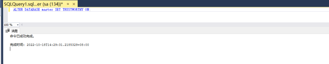 ALTER DATABASE master SET TRUSTWORTHY ON;