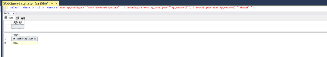 xp_cmdshell在低版本中默认开启,由于存在安全隐患,在sqlserver2005以后,xp_cmdshell默认关闭。利用xp_cmdshell执行系统命令