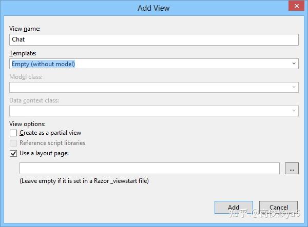 • 然后在 Views/Home 文件夹下添加一个名为Chat的View。