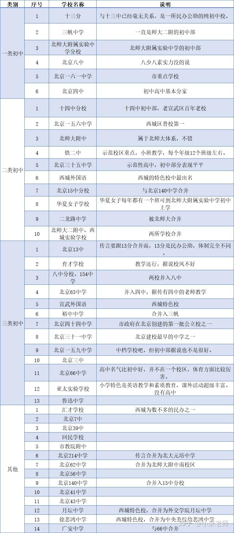 西城区初中及班型排名!学校关键信息大总结!