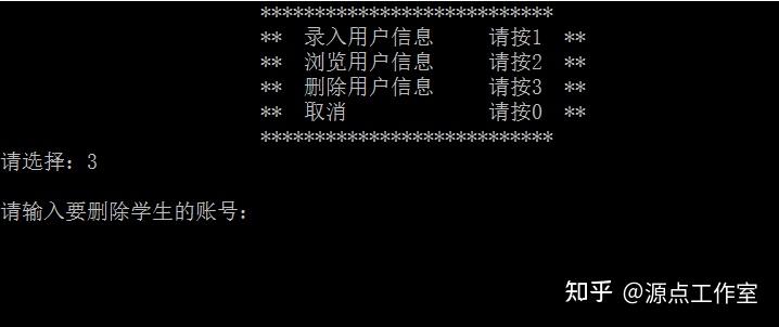 删除用户信息。输入要删除的学生账号,系统会自动删除该账号内的所有信息,如果输入账号信息有误,会提示错误,按 enter 键返回,如图 4-6 所示。