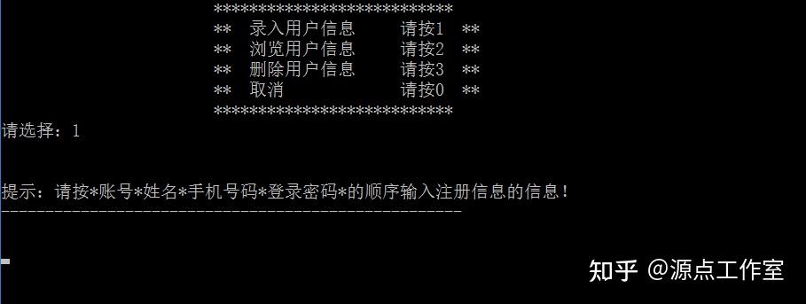 用户使用模块。输入对应的数字,进入对应的功能使用模块,可以完成用户的需求。