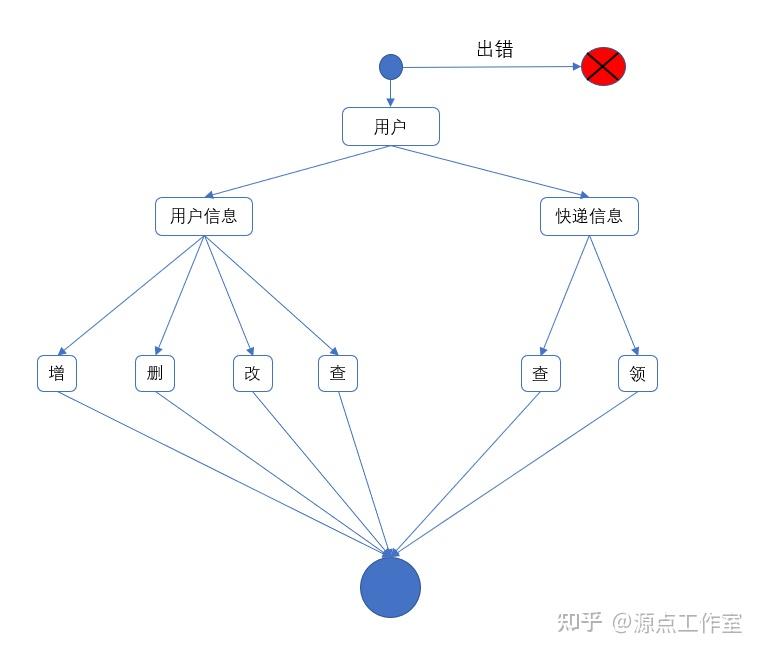 用户模块,用户通过这个模块能够查询或者修改个人信息,能够查询快递信息和领取快递。每一个操作都是平行和嵌套的,该活动图如图 2-5 所示。