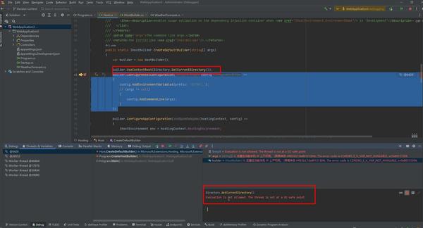 新建了一个http://ASP.NET Core 5.0的Web API项目,当使用断点调试Host.CreateDefaultBuilder(args)时,进入该函数后查看中间变量的值,报错Evaluation is not allowed: The thread is not at a GC-safe point。在群里问了也没人回应,可能没有遇到过这个问题吧。