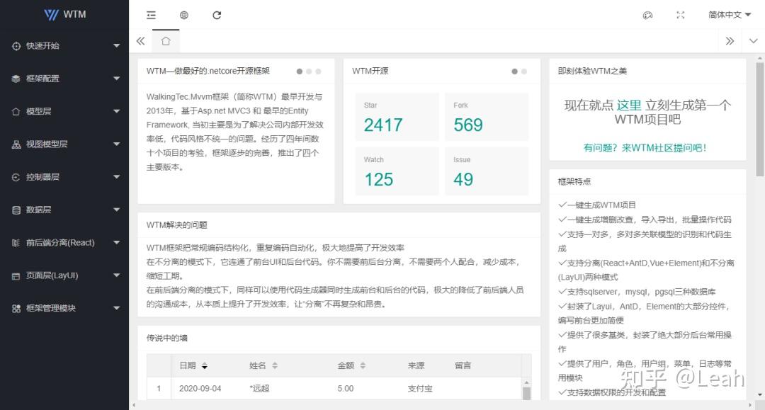 WTM框架,全称WalkingTec MVVM(不是“我特么”的拼音首字母),WTM是一个快速开发框架,有多快?至少目前dotnetcore的开源项目中,我还没有见到更接地气,开发速度更快的框架。WTM的设计理念就是最大程度的加快开发速度,降低开发成本。