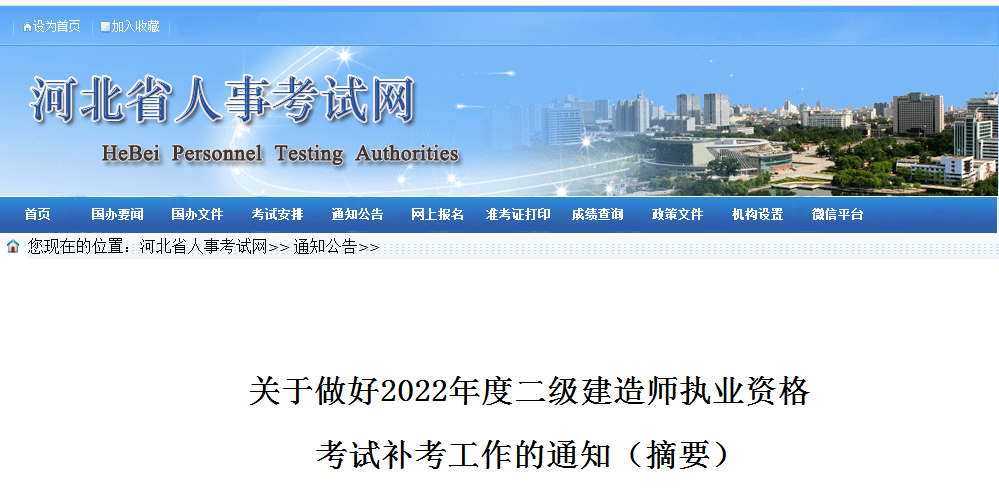 近日,河北省人事考试网发布《关于做好2022年度二级建造师执业资格考试补考工作的通知》(摘要)!