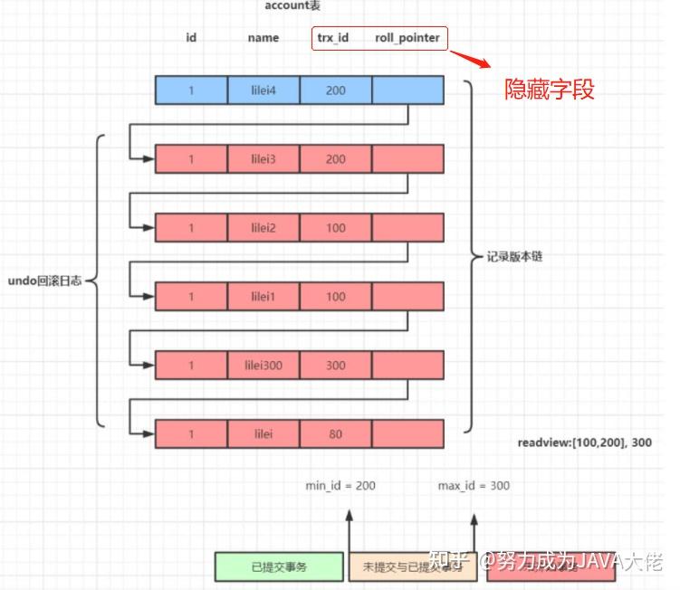 - 版本链:未提交事务id数组+已创建的最大事务id数组(不论这个事务是否提交) 如果最大事务id的事务未提交的话 版本链应该为: [min_id,最大事务id]+最大事务id