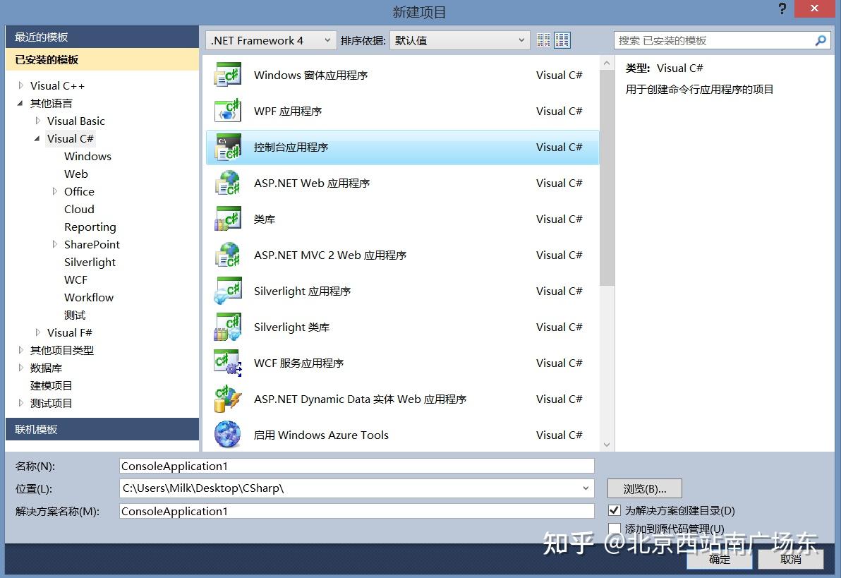 首先新建一个Console类型的Project,淡蓝色选中的类型即所谓的“Project 模板”