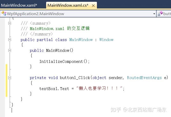 WPF 模板可以让窗口界面图形设计和代码编写分别进行(XAML),新建项目后同样插入textBox 和 Button