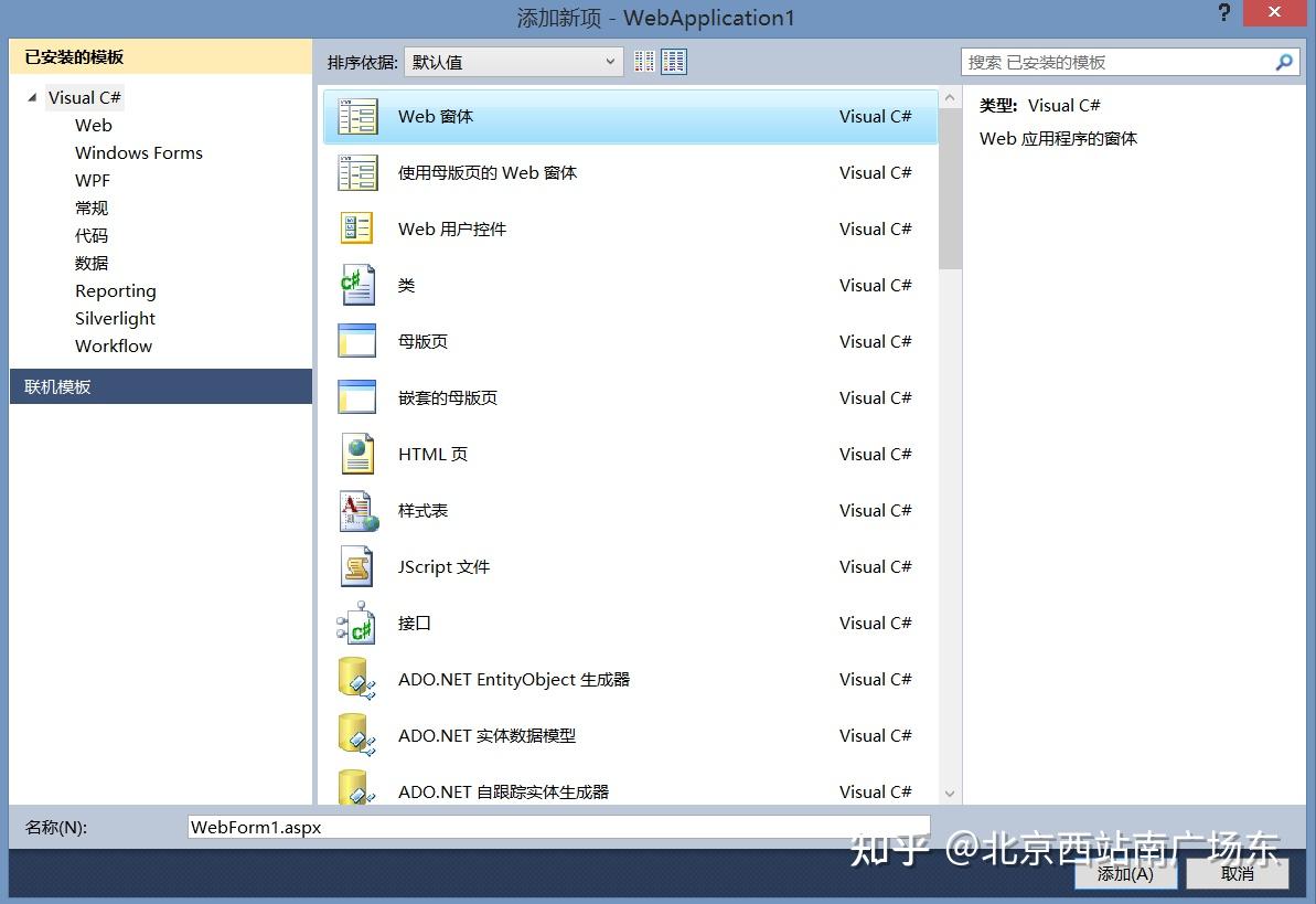 新建 Web Application 项目,然后右键解决项目名称,选择添加—“类”— Web 窗体
