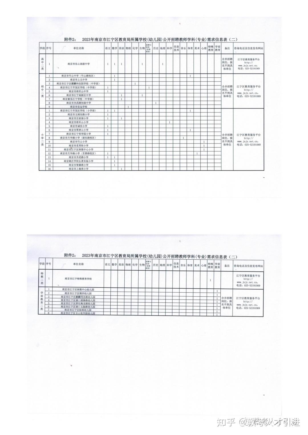 2.2023年南京市江宁区教育局所属学校(幼儿园)公开招聘教师学科(专业)需求信息表(二)