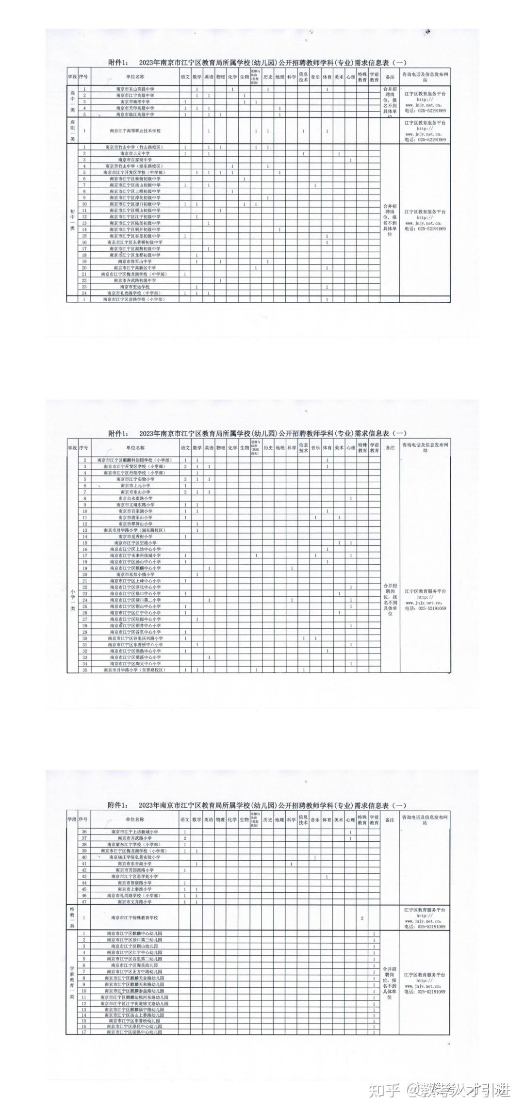 1.2023年南京市江宁区教育局所属学校(幼儿园)公开招聘教师学科(专业)需求信息表(一)