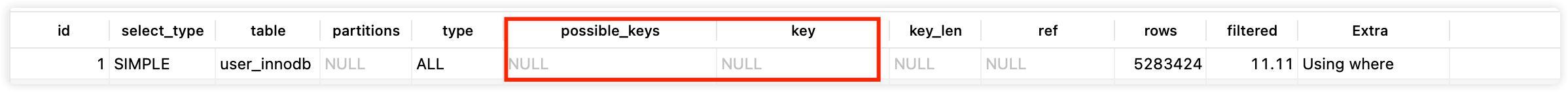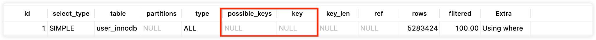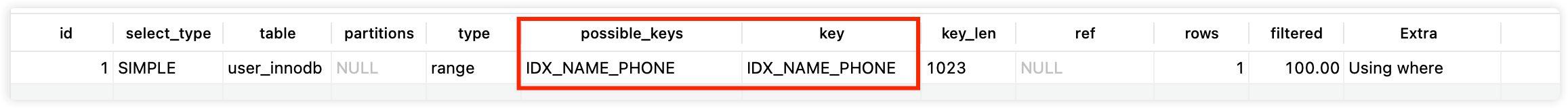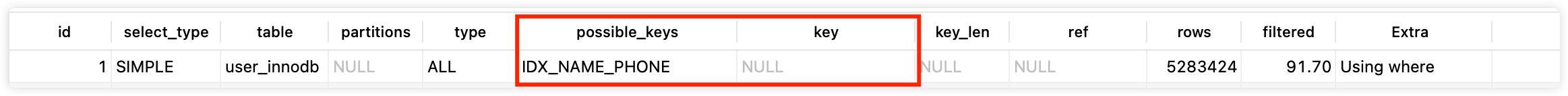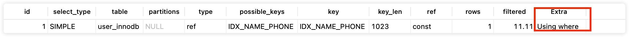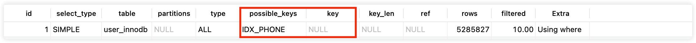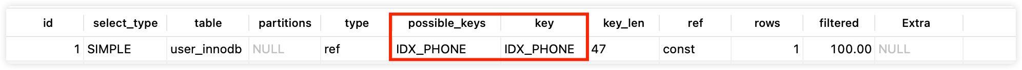 EXPLAIN SELECT * FROM user_innodb WHERE phone = '1320';