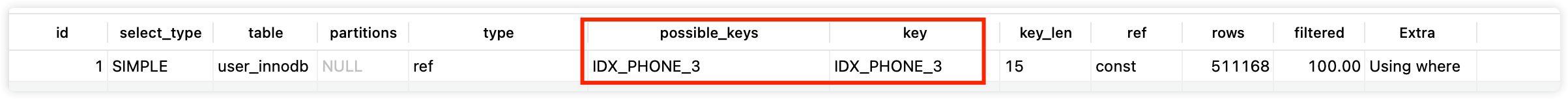 EXPLAIN SELECT * FROM user_innodb WHERE phone = '13203398311';