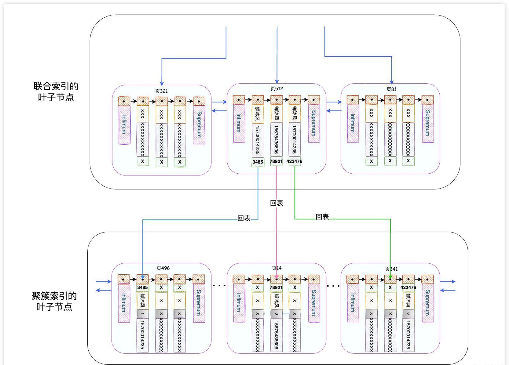 我再啰嗦一遍什么是回表,我们可以通过二级索引找到B+树中的叶子结点,但是二级索引的叶子节点的内容并不全,只有索引列的值和主键值。我们需要拿着主键值再去聚簇索引(主键索引)的叶子节点中去拿到完整的用户记录,这个过程叫做回表。