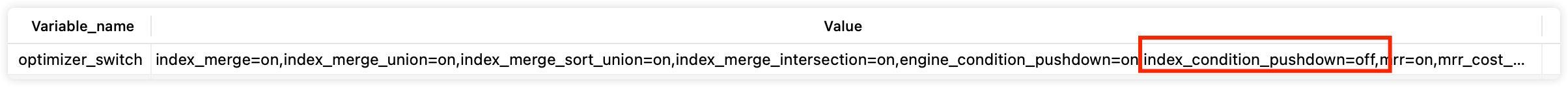 SHOW VARIABLES LIKE 'optimizer_switch';