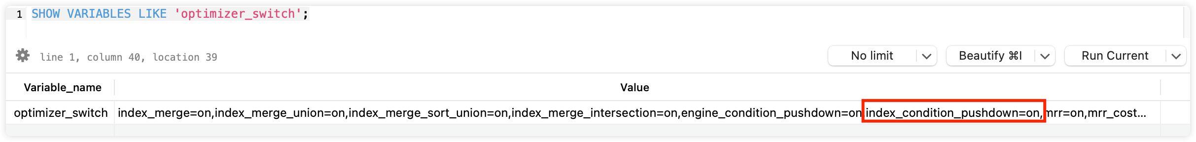注:即使满足索引下推的使用条件,查询优化器也未必会使用索引下推,因为可能存在更高效的方式。