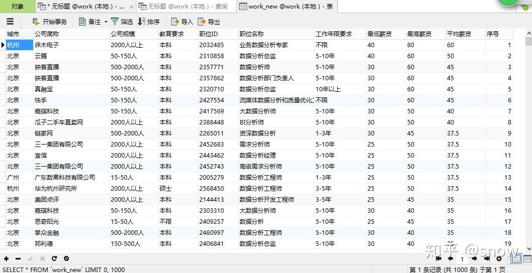 ADD COLUMN 序号 INTEGER AUTO_INCREMENT PRIMARY KEY;1.平均薪水分析