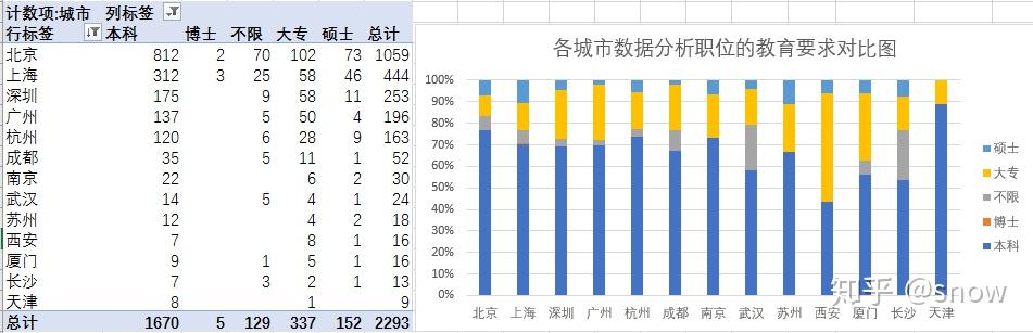 数据分析职位对受教育程度的要求不是很高,各城市普遍接受本科学历。