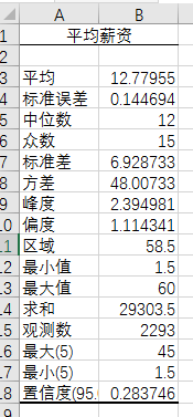从平均薪水的描述统计信息平均值为12.8K,中位数为12K,可以看出数据分析岗位的整体薪资水平是不错的。