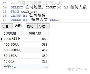 - 从公司规模来看,招聘人数随公司规模下降而递减,公司规模无论大小都需要数据分析岗位,规模越大对该岗位需求越迫切。