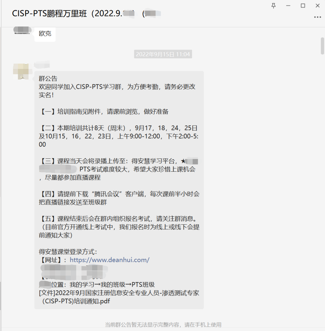 2022年9月17日,由承制科技组织的CISP-PTS注册信息安全专业人员渗透测试专家认证培训班如期举行。为更好地响应疫情防控政策,本次培训以线上直播的形式进行,共8天线上直播课程。