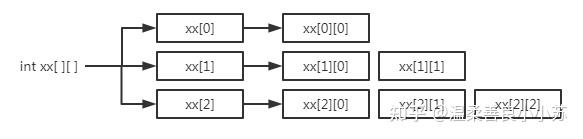 int[][] arr =new int[3][];第二种方式和第一种类似,只是数组中每个元素的长度不确定,接下来通过一个图表来表示示这种情况,如下图所示。