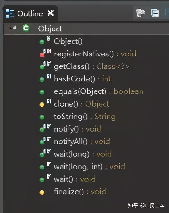 Object类是Java中所有类的基类。位于java.lang包中,一共有13个方法。如下图: