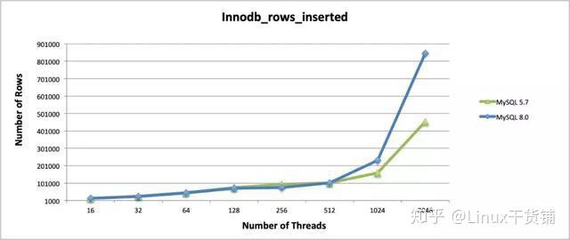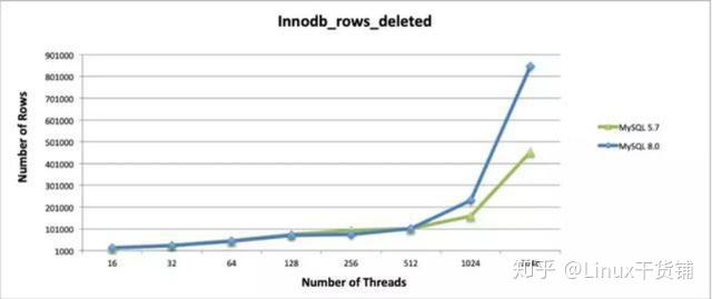 基本上在这里,我只提取了InnoDB行操作,它执行查找(读取),删除,插入和更新。当线程数量增加时,MySQL 8.0明显优于MySQL 5.7!在这两个版本中都没有针对配置项进行任何个性化变更,只有我统一配置的参数项。所以这两个版本中的配置几乎都使用默认值。