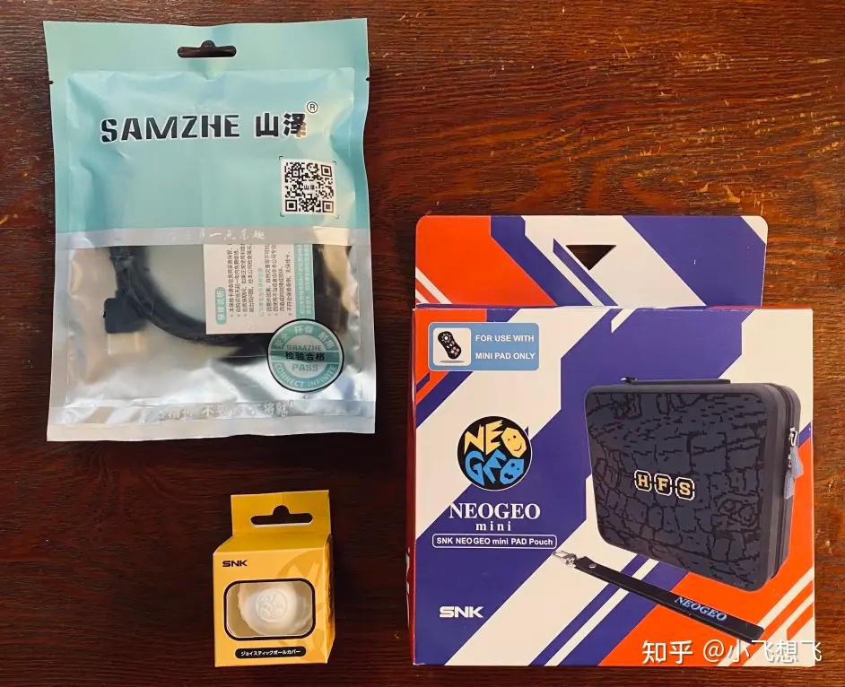 赠品一共三样: 2M HDMI线 (实用),摇杆球硅胶套 (实用),NEOGEO手柄收纳包 (感动)