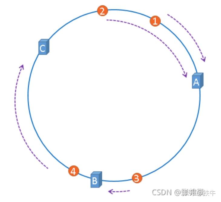 将 2^32 想象成一个圆 → 确定服务器在哈希环的位置:hash(服务器的IP) % 2^32 → 数据映射到哈希环上:hash(图片名称) % 2^32 → 沿顺时针方向遇到的第一个服务器就是图片存放的服务器