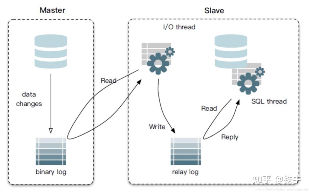 • 从启动IO线程,读取主的binlog日志,写入relay log(中继日志)