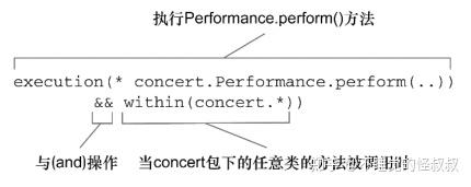 @Pointcut("execution(* concert.Performance.perform(..))")  // 定义命名的切点