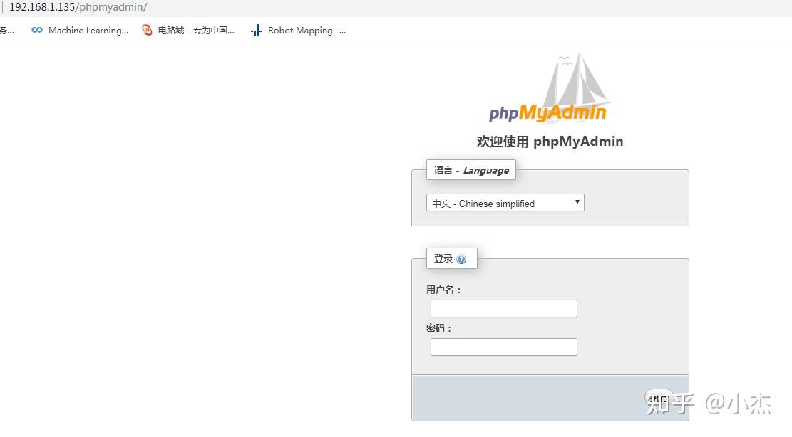 完成后在浏览器中输入:IP 地址 /phpmyadmin,不出意外将出现下面的界面。