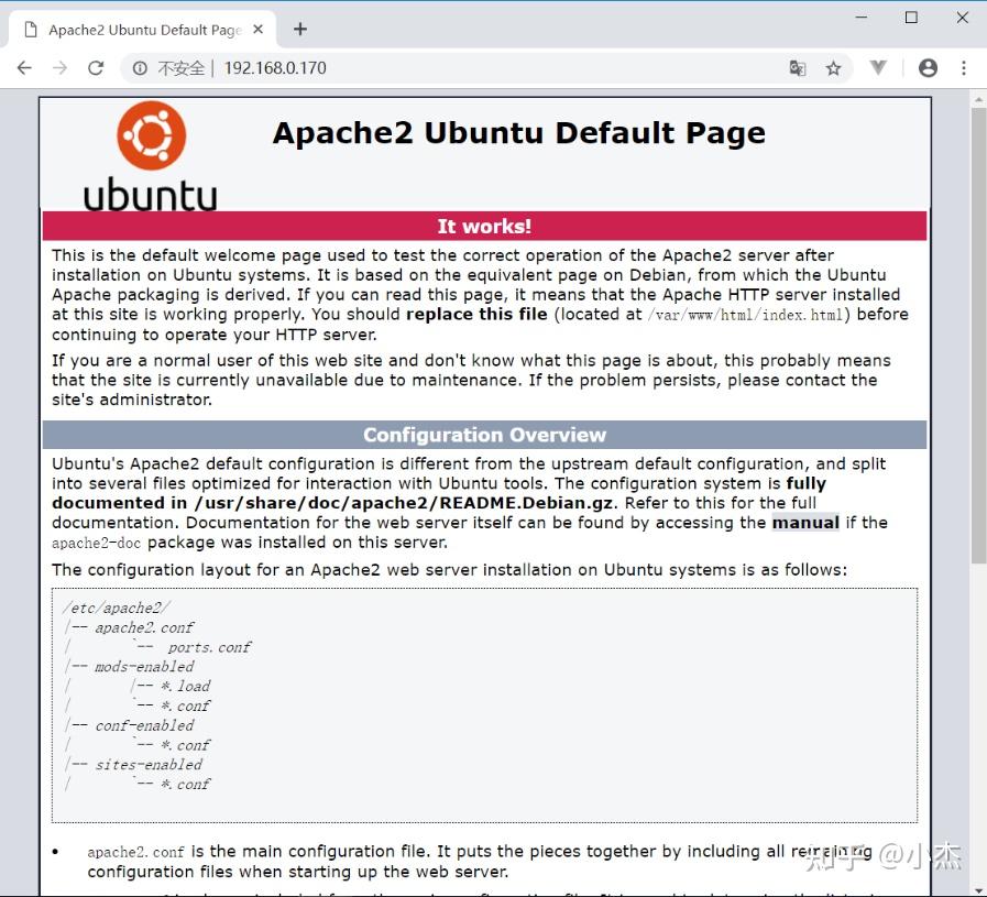 打开浏览器,在你的主机上输入你的 IP 地址,或者输入 127.0.0.1 或者输入 localhost,这是一回事。不出意外将会出现 Apache2 Ubuntu Default Page,即 Apache2 Ubuntu 默认页面。