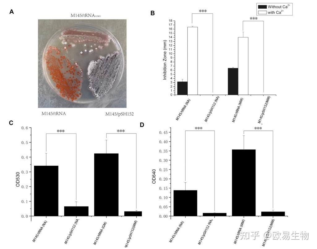 图2 | 表达 tRNA-Asp-AUC 的天蓝色链球菌增强抗生素产量